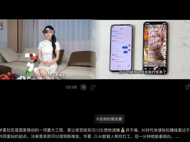 此外,“官网”和部分推广“华夏社区”的自媒体、网络群组都使用了一段看似来自央视财经频道的“记者采访”视频。视频左上角有“CCTV2 财经频道”的标志,“主持人”拿着带有“CCTV2 财经频道”台标的话筒,街访“市民”都表示知晓“华夏社区”项目,并且已经从中受益。但是,央视财经频道没有发布过类似的新闻报道开云真人,而且该视频的拍摄、剪辑方式,以及“市民”的应答,与正常的新闻采访截然不同,摆拍痕迹浓重。