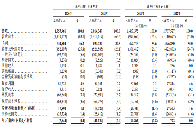 根据财报,2020年至2021年以及2022年前9个月,公司分别实现亏损784.4万元、4113.9万元以及盈利77.2万元,2021年前9月则亏损4086.1万元,2022年同期同比扭亏。